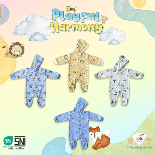 LIBBY Piyama Baju Kodok Newborn Bayi Laki laki Perempuan Motif Playful Harmony (1 pcs)-Sleepsuit-Bodysuit-Play Suit-Jumper Pendek-Jumper Panjang