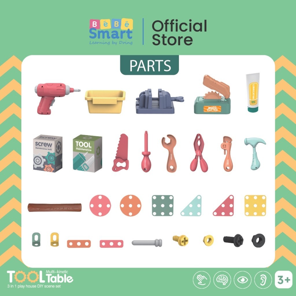 1. 3 in 1 permainan perkakas, bisa jadi scooter mode, tool table mode, dan ayunan kursi