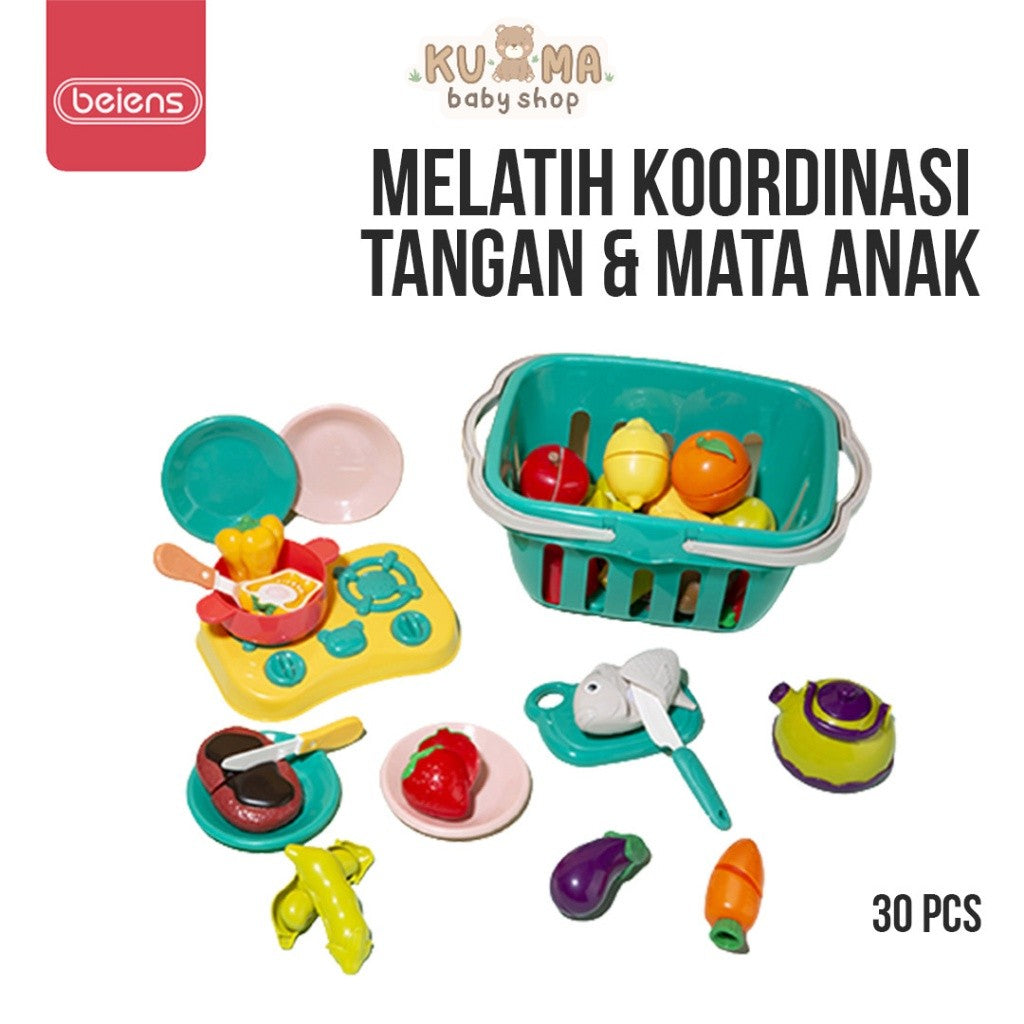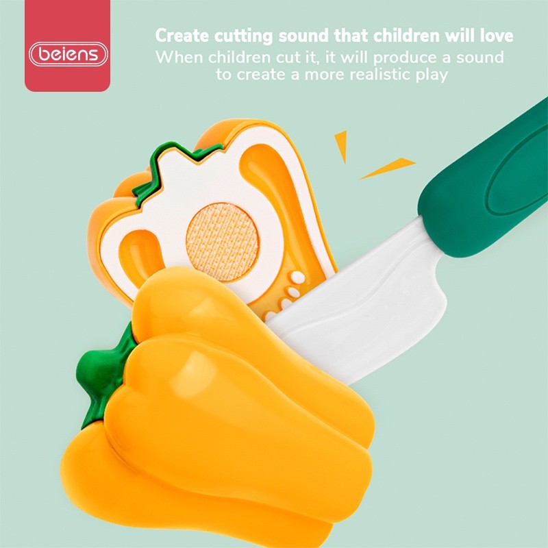 Beiens Cutting toys adalah mainan masak-masak, mainan potong sayur dan buah, mainan edukasi yang menjadi salah satu cara si kecil untuk eksplorasi dunia, memberikan pengalaman untuk meniru. Suara memotong tidak hanya menjawab rasa ingin tahu anak tapi juga membantu mengasah pemikiran anak.