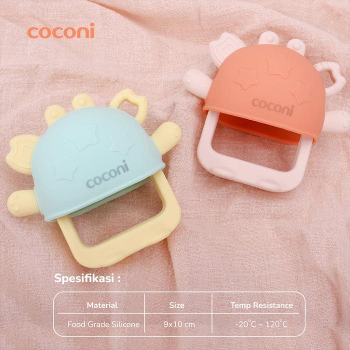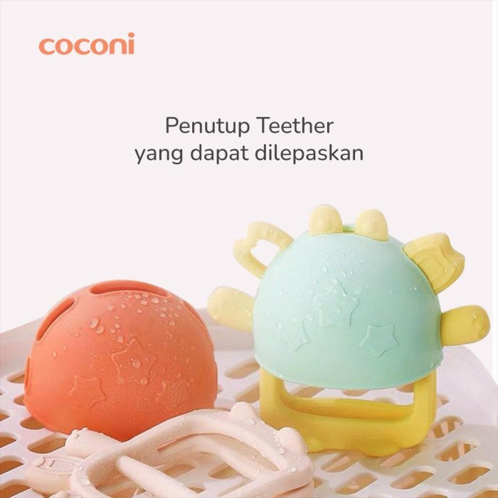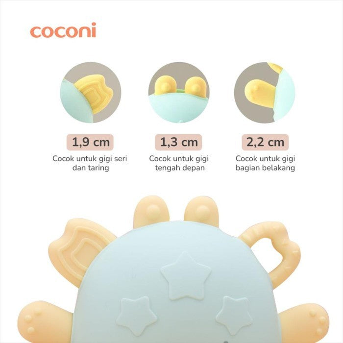 Coconi Bracelet Crab Teether adalah Mainan gigitan bayi model gelang dengan motif kepiting yang lucu, terbuat dari 100% Food Grade Silicone material, BPA Free. Fungsi utama penggunanaan teether adalah untuk membuat bayi merasa nyaman dalam fase pertumbuhan gigi yang membuat gusi gatal.