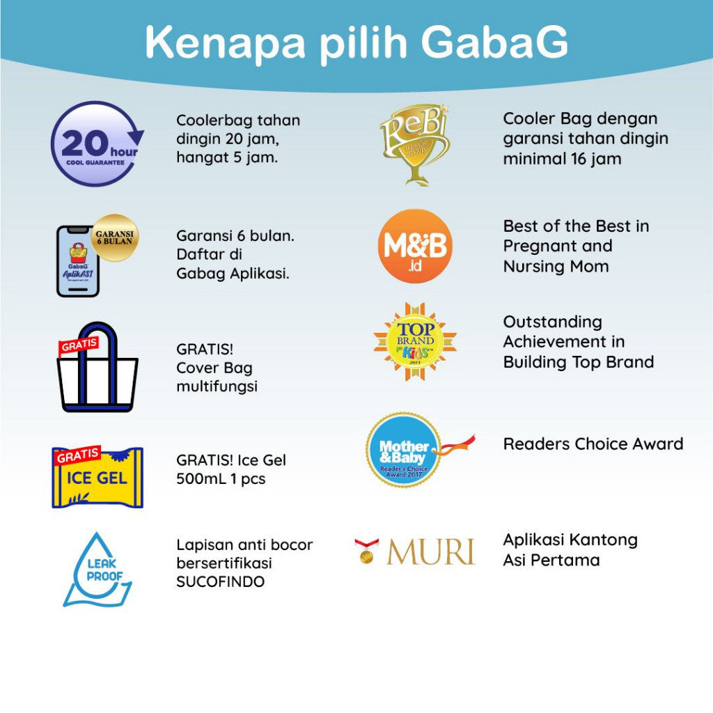 bagian cooler bag terdapat lapisan khusus thermal dari GabaG yang dapat menjaga suhu dingin hingga 20 jam, dan hangat hingga 4 jam serta anti bocor.