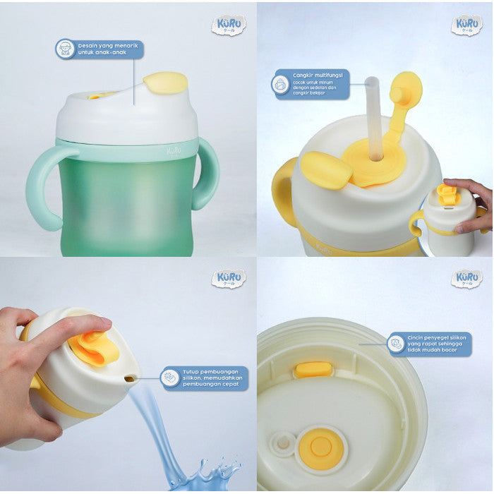 Kuru SC30 Stainless Steel Kids Training Cup with Straw | Gelas Anak