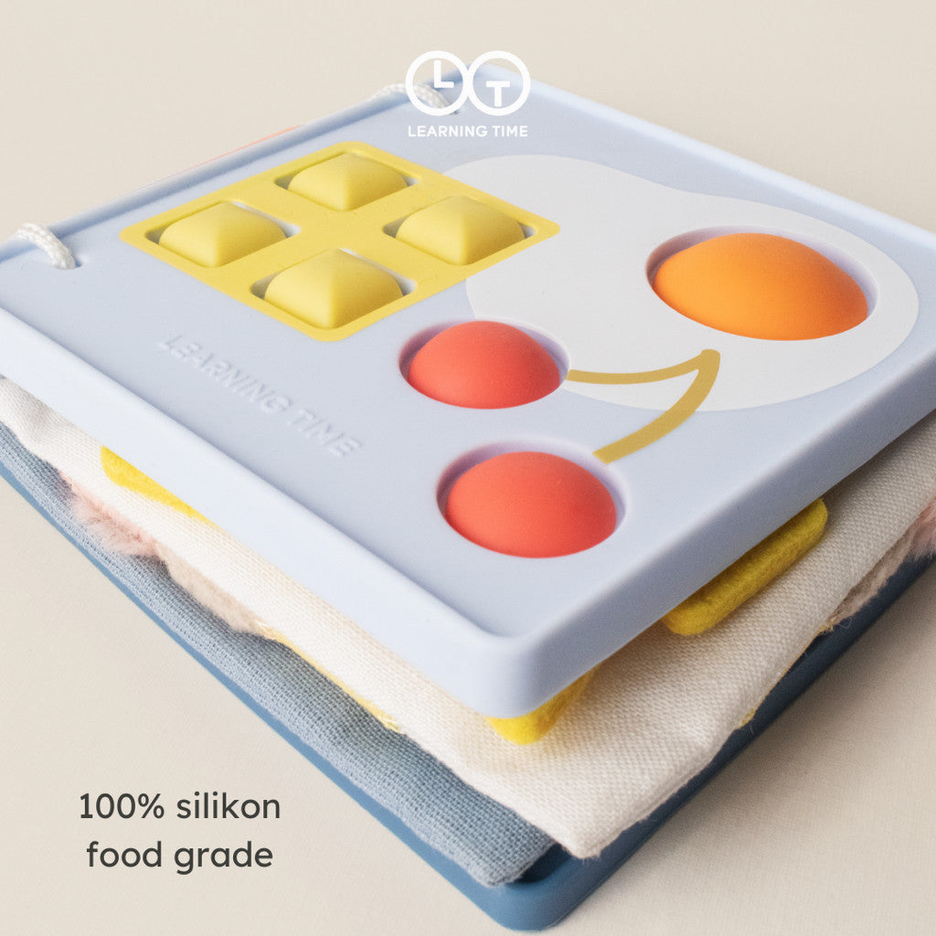 Buku edukasi yang terbuat dari material silikon 100% food grade, berisi aktivitas yang dapat membuat Si Kecil sibuk memainkan elemen - elemen yang terdapat di buku ini, seperti menekan, menarik, menyentuh hingga menggigitnya. Ukurannya yang tidak besar membuat buku ini mudah untuk dibawa kemanapun. Untuk usia 4-12 Bulan.
