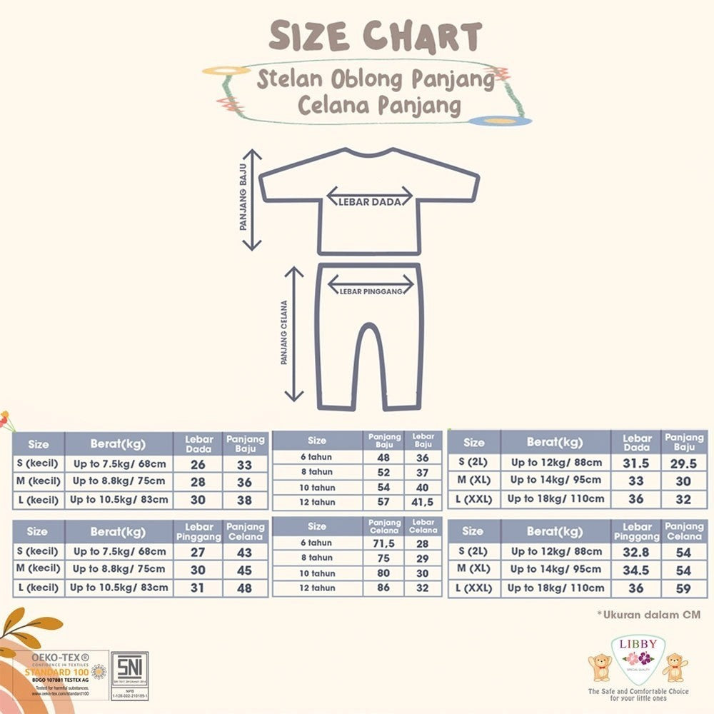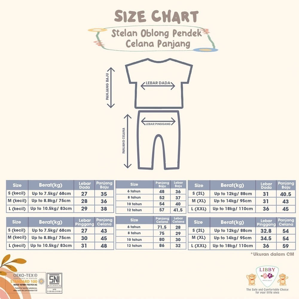 Libby telah mendapatkan sertifikasi Internasional Oeko Tex Standard 100 kelas 1 dan juga SNI, yang menjamin bahwa produk ini aman untuk digunakan Si Kecil Moms . Bebas dari bahan kimia berbahaya adalah prioritas utama, dan dengan produk Libby , Mommies dapat merasa yakin bahwa telah memberikan pakaian yang aman dan berkualitas utk kulit sensitif si Kecil.