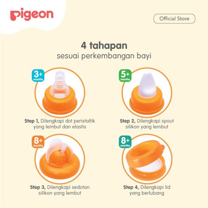 - Terdiri dari 2 buah cangkir, dengan satu set lengkap dari step 1 hingga step 4 dengan bagian atas cangkir yang dapat diganti sesuai dengan perkembangan bayi minum.