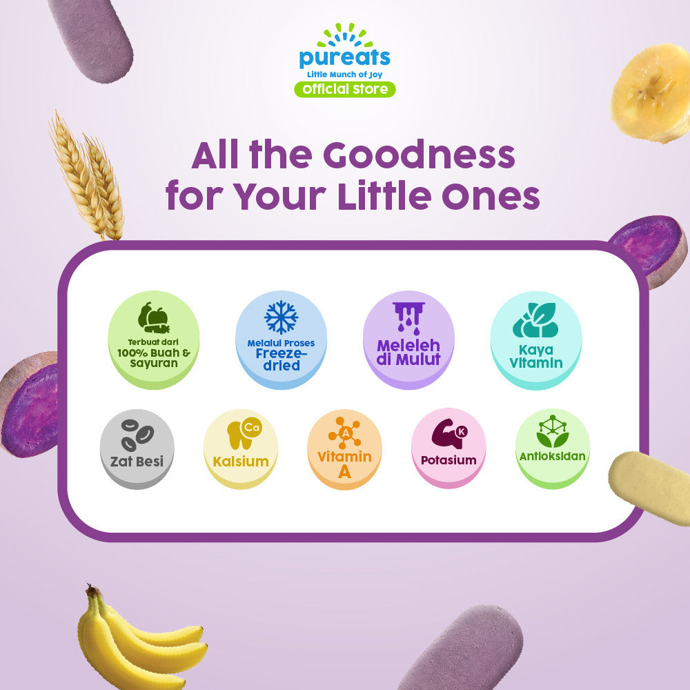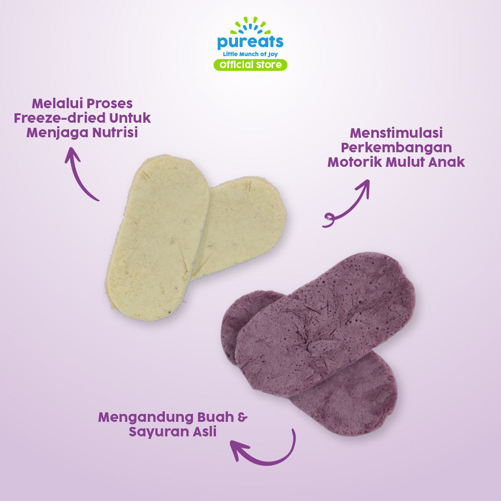 Pureats Melt Crackers adalah camilan sehat untuk si kecil yang terbuat dari perpaduan buah dan sayuran segar pilihan. Setiap cracker diproses menggunakan metode freeze dried, yang menjaga nutrisi, rasa alami, dan tekstur renyahnya.