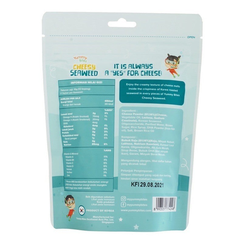 Yummy Bites Cheesy Seaweed adalah cemilan untuk anak mulai usia 1 tahun.